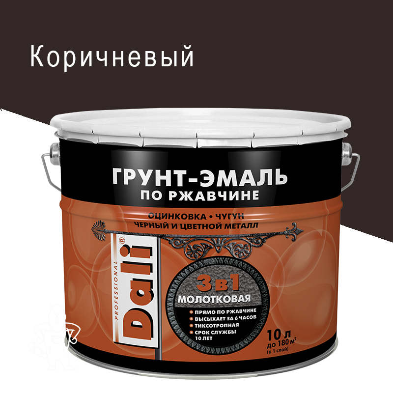 Купить Грунт-эмаль по ржавчине «DALI» 3 в 1 молотковая коричневая 10 л в Ликино-Дулево с доставкой по городу и в другие города.