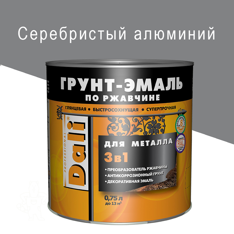ГРУНТ-ЭМАЛЬ ПО РЖАВЧИНЕ «DALI» 3 В 1 СЕРЕБРИСТЫЙ АЛЮМИНИЙ (RAL 9006) 0,75 Л