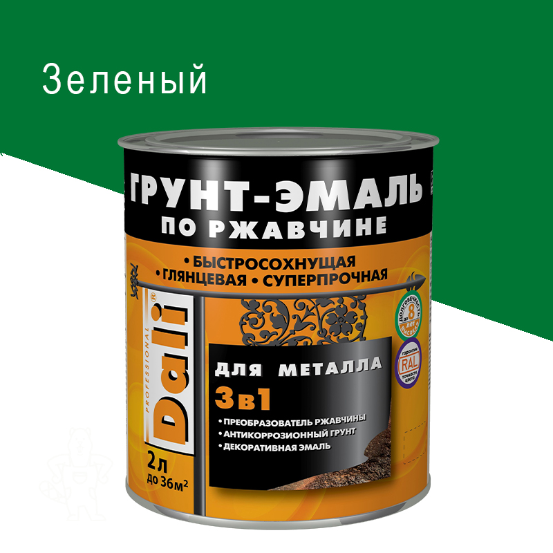 Купить Грунт-эмаль по ржавчине «DALI» 3 в 1 зеленая 2 л