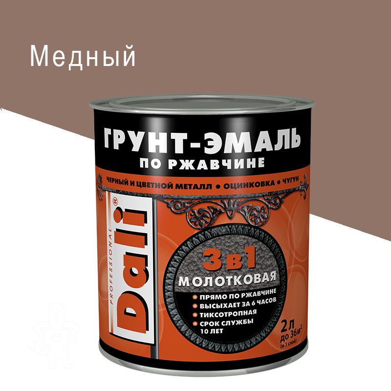 Главная МАГАЗИН ЛКМ Эмали DALI Грунт-эмаль по ржавчине DALI 3в1 молотковая медная 2 л