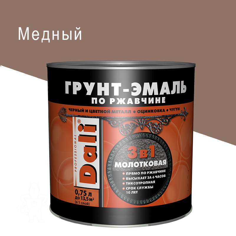 Купить Грунт-эмаль по ржавчине DALI 3в1 молотковая медная 0,75 л в Ликино-Дулево с доставкой по городу и в другие города.