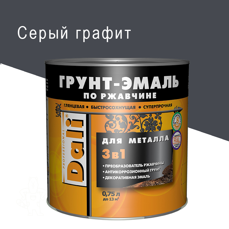 Купить Грунт-эмаль по ржавчине «DALI» 3в1 Серый Графит 0,75л. в Ликино-Дулево с доставкой по городу и в другие города.