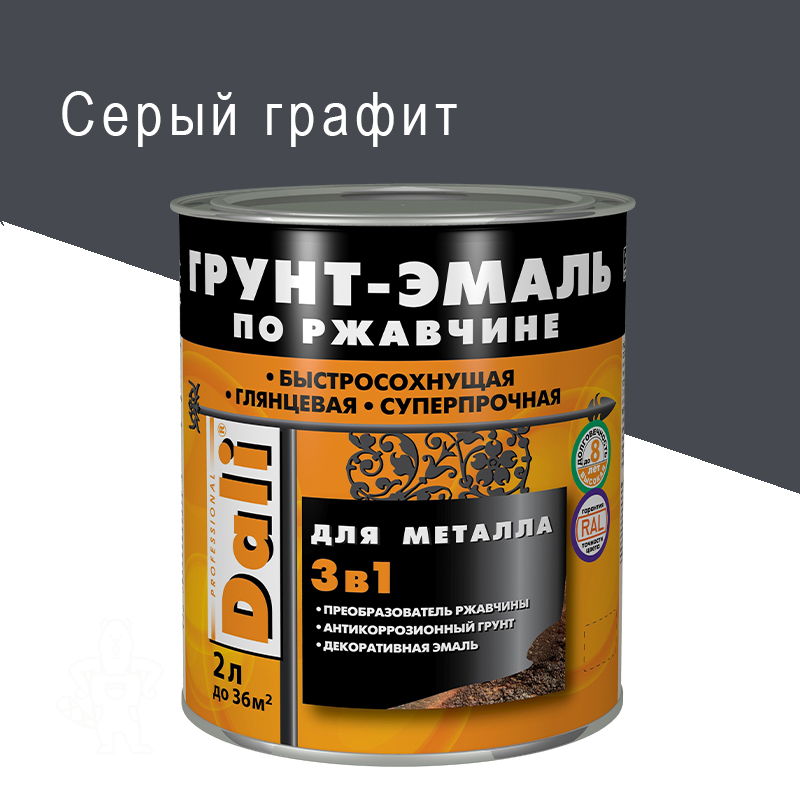 Купить Грунт-эмаль по ржавчине «DALI» 3в1 Серый Графит 2л.