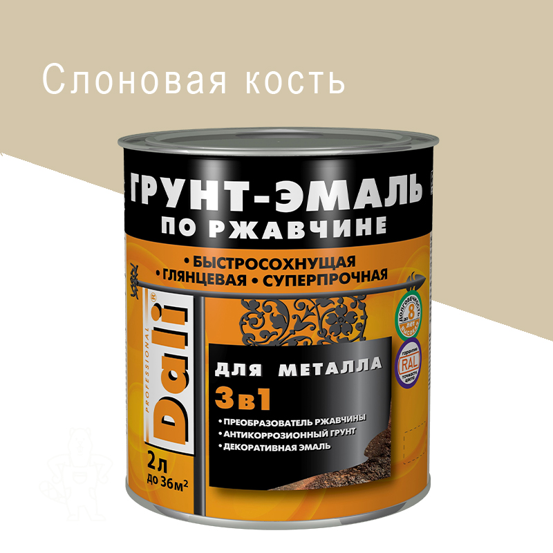 Купить Грунт-эмаль по ржавчине DALI 3в1 слоновая кость 2 л