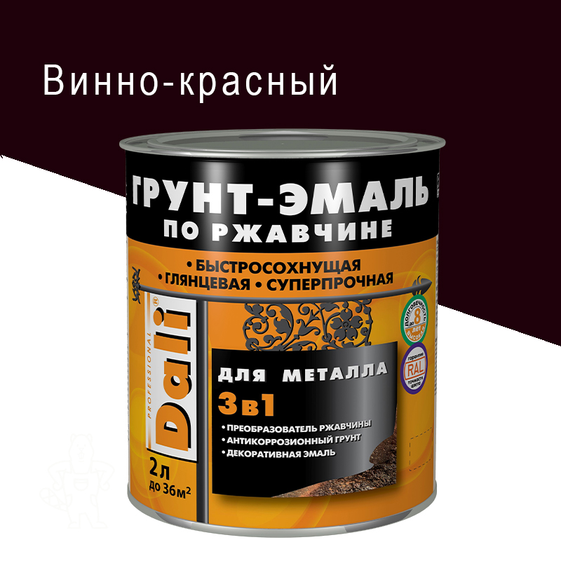 Главная МАГАЗИН ЛКМ Эмали DALI Грунт-эмаль по ржавчине DALI 3в1 винно-красный 2 л
