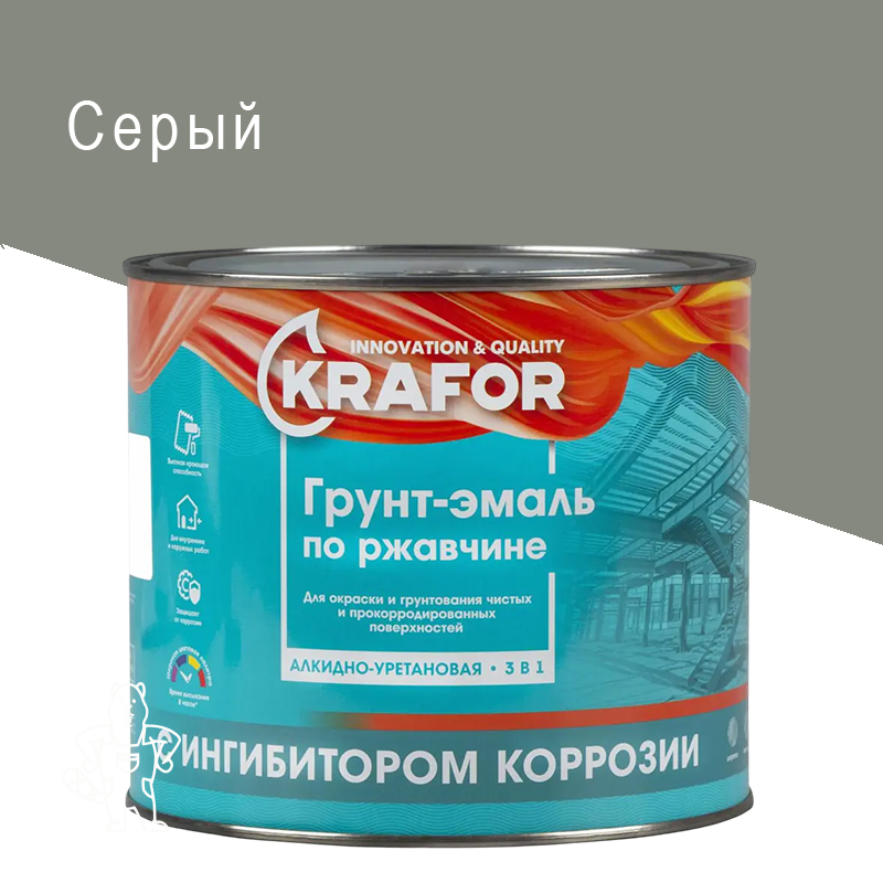 Купить Грунт-эмаль по ржавчине KRAFOR Серая 1,9 Кг в Ликино-Дулево с доставкой по городу и в другие города.