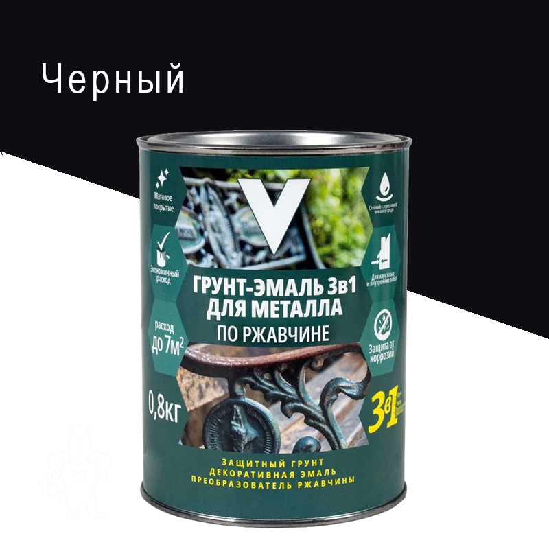 Купить ГРУНТ-ЭМАЛЬ ПО РЖАВЧИНЕ «V» 3В1 ЧЕРНАЯ 0,8КГ в Ликино-Дулево с доставкой по городу и в другие города.