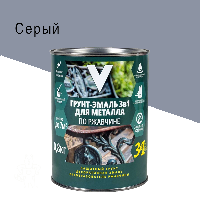 Купить ГРУНТ-ЭМАЛЬ ПО РЖАВЧИНЕ «V» 3В1 СЕРАЯ 0,8КГ в Ликино-Дулево с доставкой по городу и в другие города.