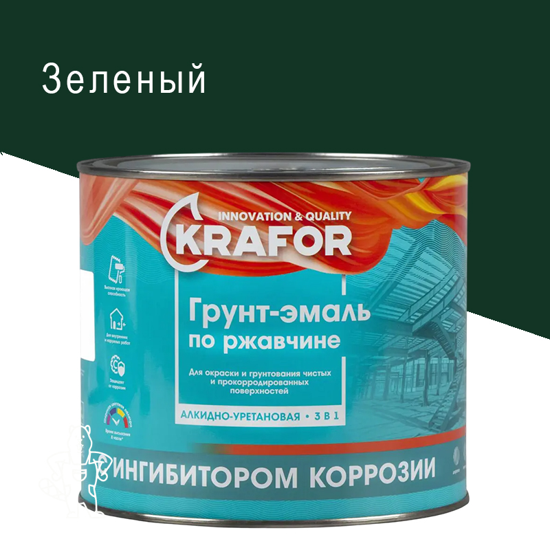 Купить Грунт-эмаль по ржавчине KRAFOR Зеленая 1,9 Кг в Ликино-Дулево с доставкой по городу и в другие города.