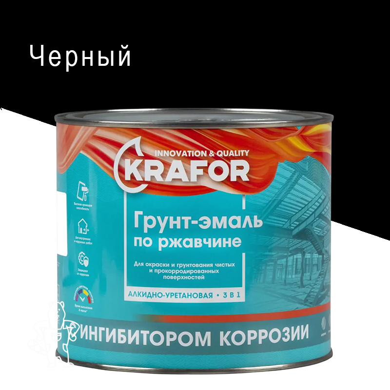 Главная МАГАЗИН ЛКМ Эмали KRAFOR Грунт-эмаль по ржавчине KRAFOR Черная 1,9 Кг