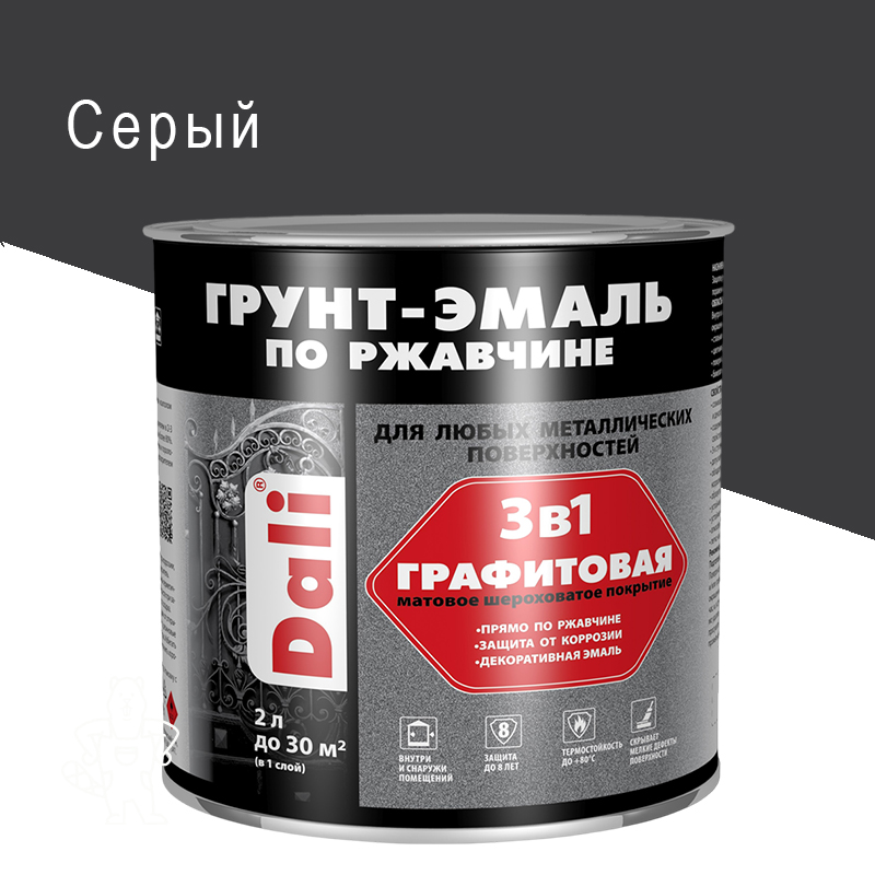 Главная МАГАЗИН ЛКМ Эмали DALI Грунт-эмаль по ржавчине «DALI» 3 в 1 графитовая серая 2л