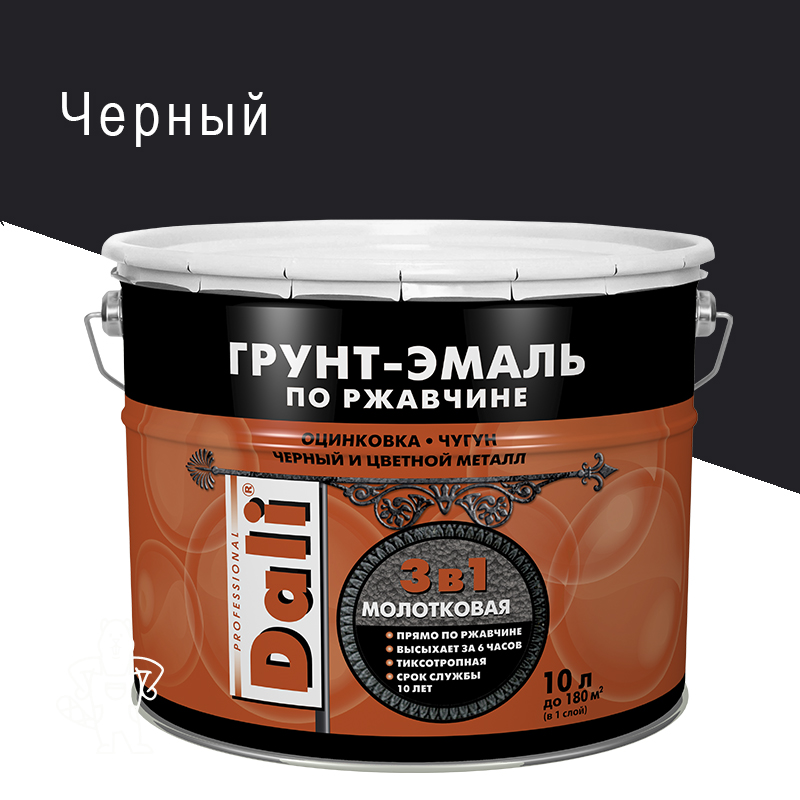 Купить Грунт-эмаль по ржавчине DALI 3в1 молотковая черная 10 л
