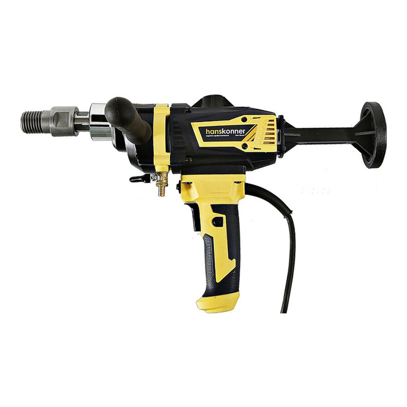 Дрель алмазного сверления Hanskonner HID2180M — компактный и мощный электроинструмент с надежной конструкцией для сверления алмазными коронками отверстий в таких материалах: бетон, железобетон, искусственный и натуральный камень, кирпич. Подключив инструмент к водопроводному крану можно сократить запыленность рабочей зоны, а также износ алмазных коронок и дрели. Данная модель оснащена предохранительной муфтой, срабатывающей при заклинивании коронки, и термозащитой работающей при других видах перегруженности.