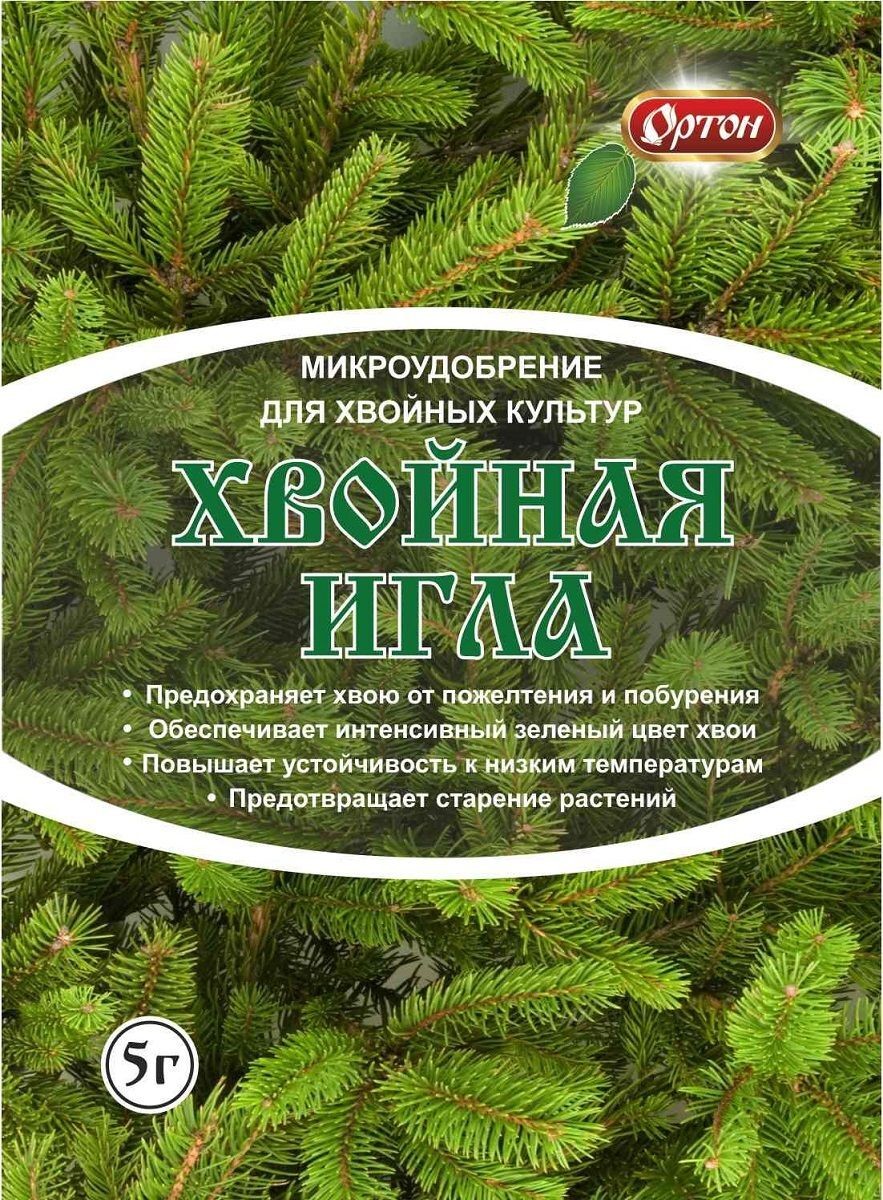 Микроудобрение Хвойная игла предназначено для подкормки хвойных культур (ель, сосна, можжевельник, туя). Устраняет дефицит микроэлементов, активизирует фотосинтез. Борется с пожелтением и побурением хвои. Преимущества- стимулирует рост и развитие растений; — обеспечивает профилактику хлороза; — придает интенсивный зеленый цвет хвои; — повышает устойчивость к низким температурам и заболеваниям.