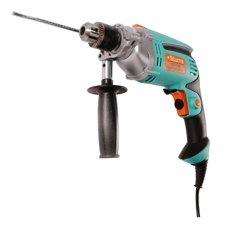 Ударная дрель Sturm ID2176A снабжена двигателем мощностью 750 Вт. Ключевой патрон был и остается самым надежным для работы, особенно с ударными дрелями. Оснастка крепко зажимается и не подводит в самый ответственным момент. Ограничитель глубины обеспечивает сверление отверстий на заданную глубину. Металлический корпус редуктора гарантирует долгий срок службы. Благодаря дополнительной рукоятке, дрель легко удерживать во время работы.