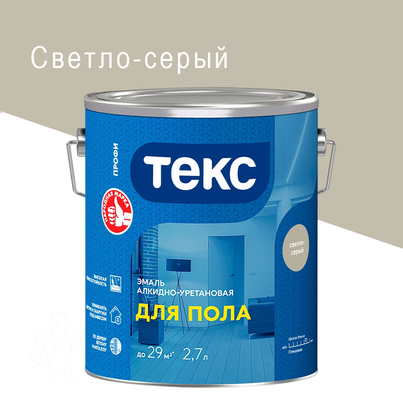 Купить Эмаль д/пола алкидно-уретан. светло-серая 2,7л ТЕКС
