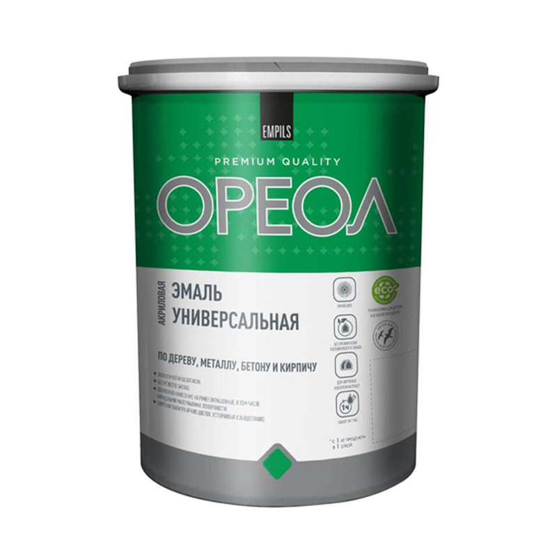 Эмаль универсальная акриловая Ореол глянцевая черная 0,9 кг.