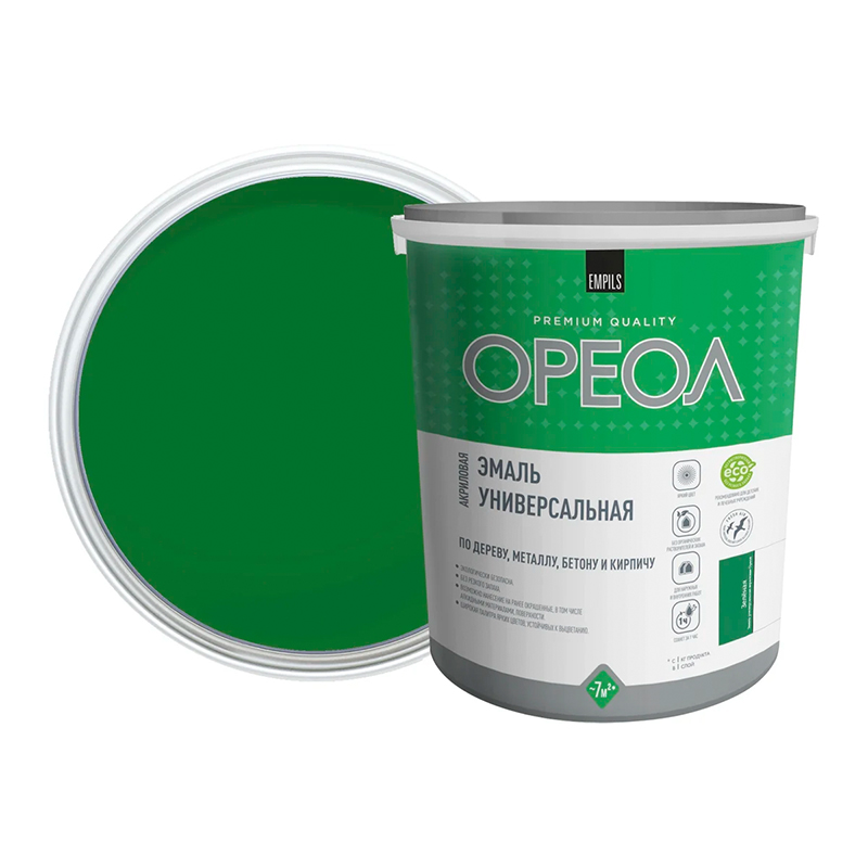 Эмаль универсальная акриловая Ореол глянцевая зеленая 0
