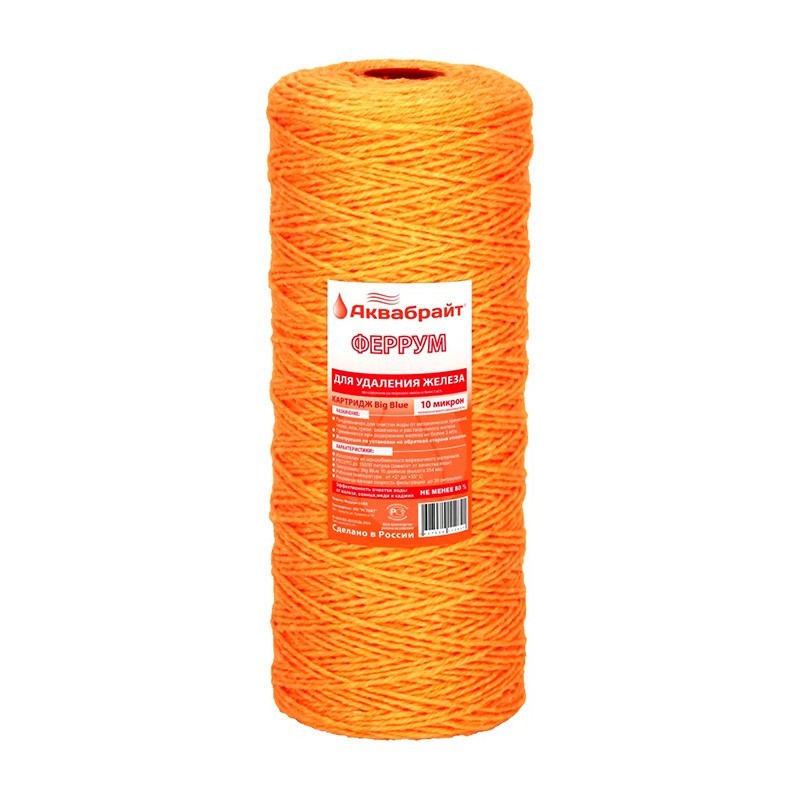 Купить Картридж Веревочный Аквабрайт для УДАЛЕНИЯ ЖЕЛЕЗА и механической очистки воды 10мкр для корпуса 10 Slim в Ликино-Дулево с доставкой по городу и в другие города.