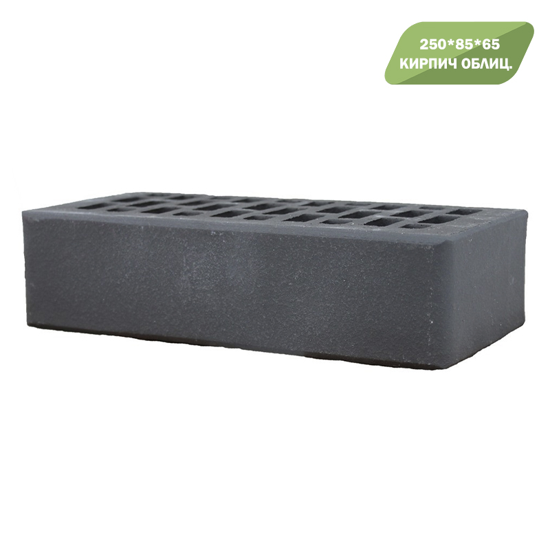 Кирпич облицовочный одинарный графит гладкий 250*85*65мм М-150