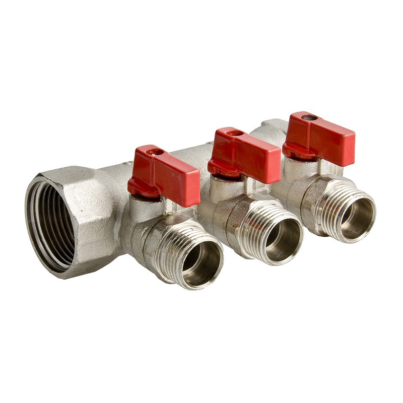 Купить Коллектор с шар. краном 3/4 * 1/2 -3 входа НИКЕЛЬ