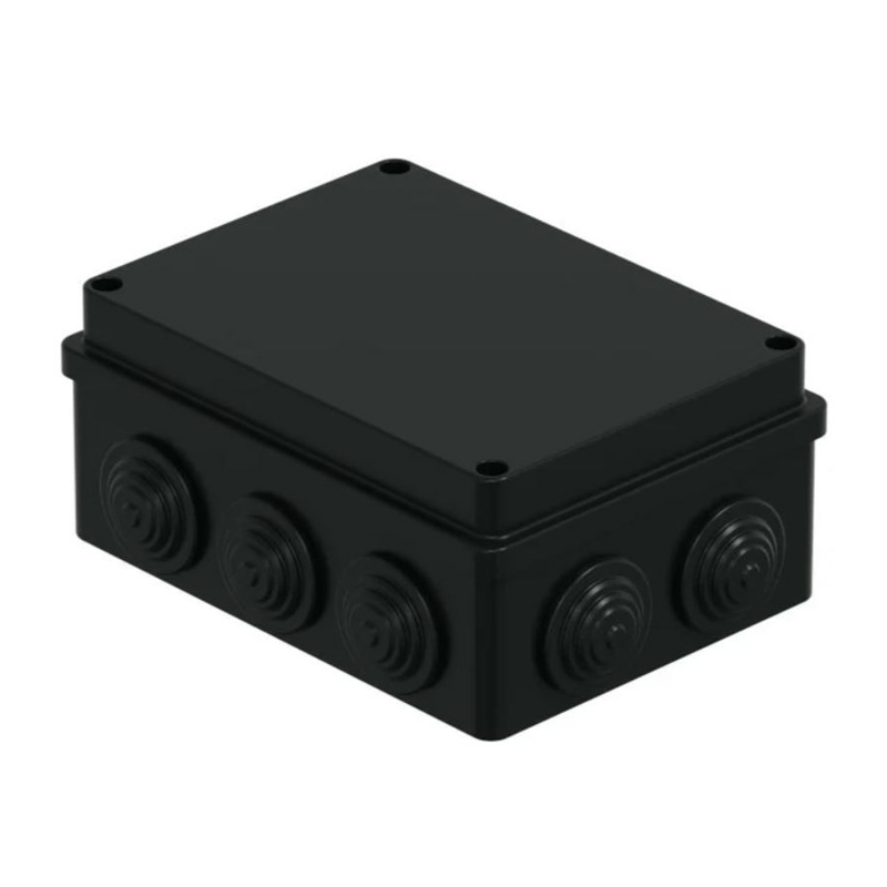 Главная МАГАЗИН ЭЛЕКТРИКА Каб. канал , короба, гофра Коробка расп. пылевлагозащ. с герм. вводами 150х110х70 IP55 черная