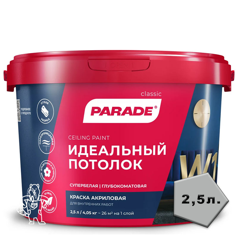 Купить Краска акрил. PARADE W1 Идеальный потолок бел. мат. 2,5л. в Ликино-Дулево с доставкой по городу и в другие города.