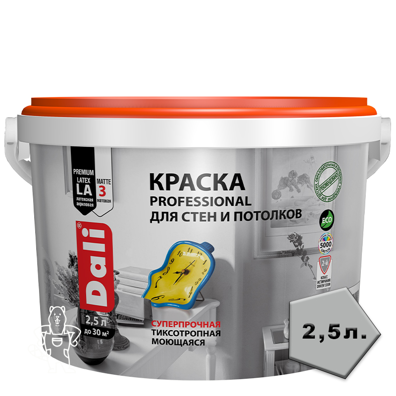 Купить Краска акриловая «DALI PROFESSIONAL» 3 (матовая) для стен ипотолков База А 2,5л.