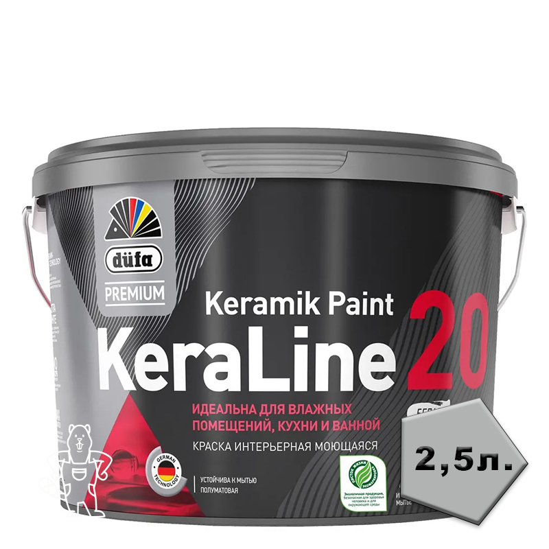 Купить Краска д/влаж.помещ. Dufa Premium KeraLine Keramik Paint 20 полуматовая белая база1 2,5 л