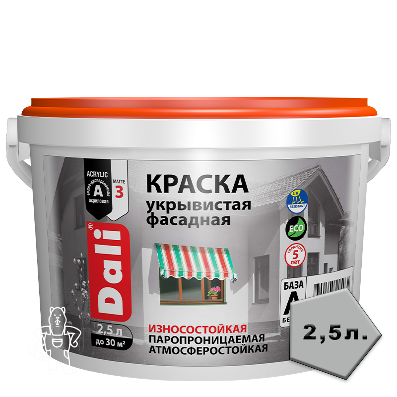 Купить Краска «DALI» Фасадная Матовая Укрывистая 2,5л. в Ликино-Дулево с доставкой по городу и в другие города.