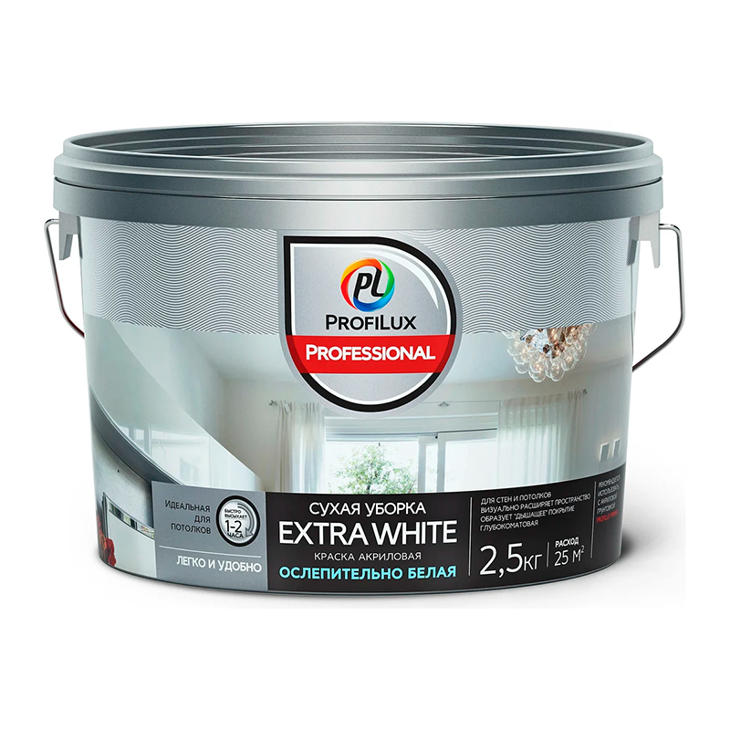 Купить Краска для стен и потолков водно-дисперсионная Profilux Professional Extra white матовая 2,5 кг.,
