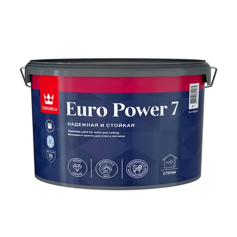 Купить КРАСКА «EURO POWER-7» 9 Л (1) МОЮЩАЯСЯ ДЛЯ СТЕН И ПОТОЛКОВ «ТИККУРИЛА»