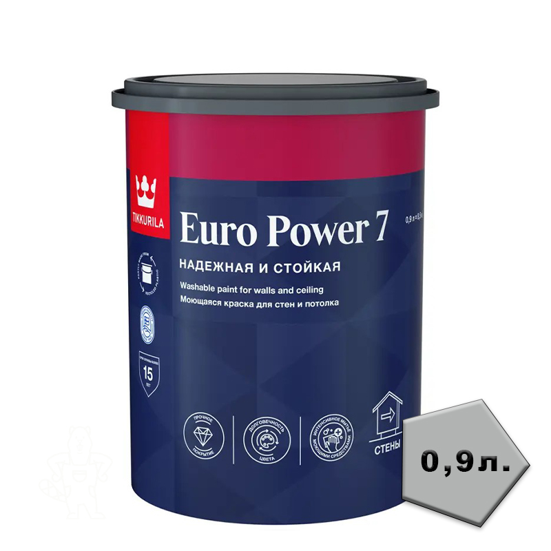 Краска EURO POWER-7 моющ. д/стен и потолков БАЗА А 0,9л TIKKURILA