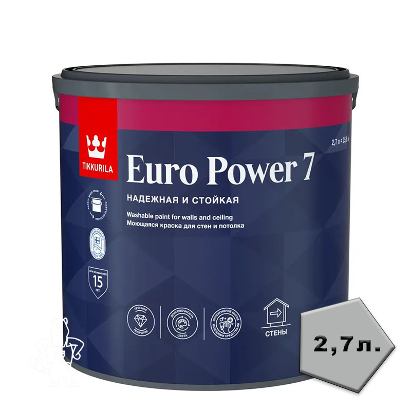 Краска EURO POWER-7 моющ. д/стен и потолков БАЗА А 2,7л TIKKURILA