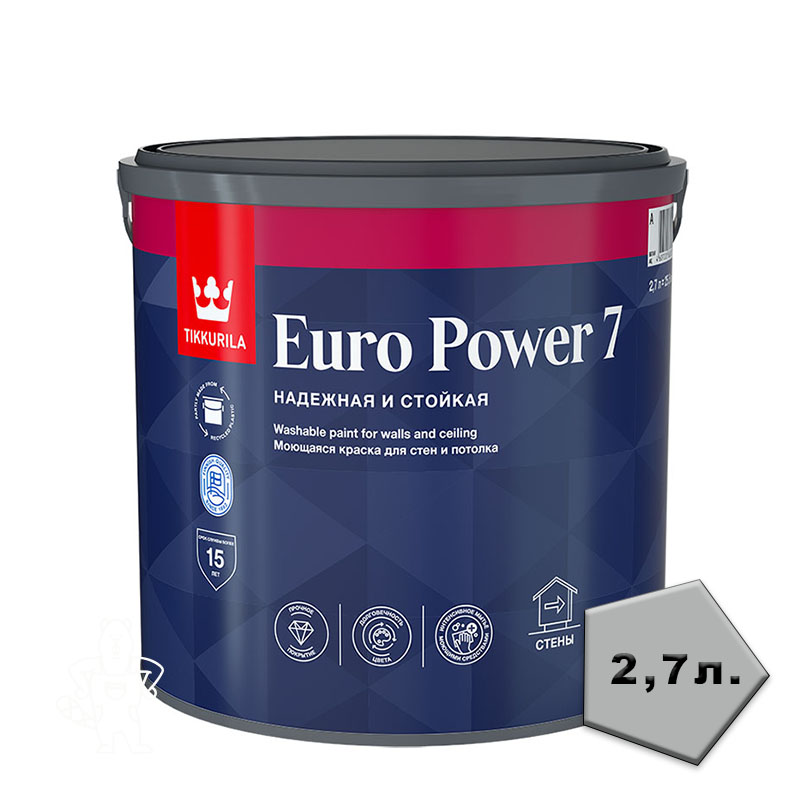 Краска EURO POWER-7 моющ. д/стен и потолков БАЗА А 2,7л TIKKURILA