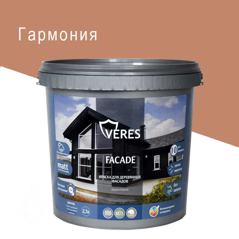 Главная МАГАЗИН ЛКМ Kраски Veres КРАСКА «FACADE» ДЛЯ ДЕРЕВ.ФАСАДОВ АКРИЛ ГАРМОНИЯ 2,7 Л