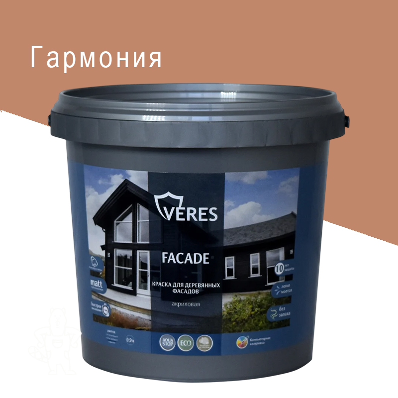 Главная МАГАЗИН ЛКМ Kраски Veres КРАСКА «FACADE» ДЛЯ ДЕРЕВ.ФАСАДОВ АКРИЛ ГАРМОНИЯ 9 Л