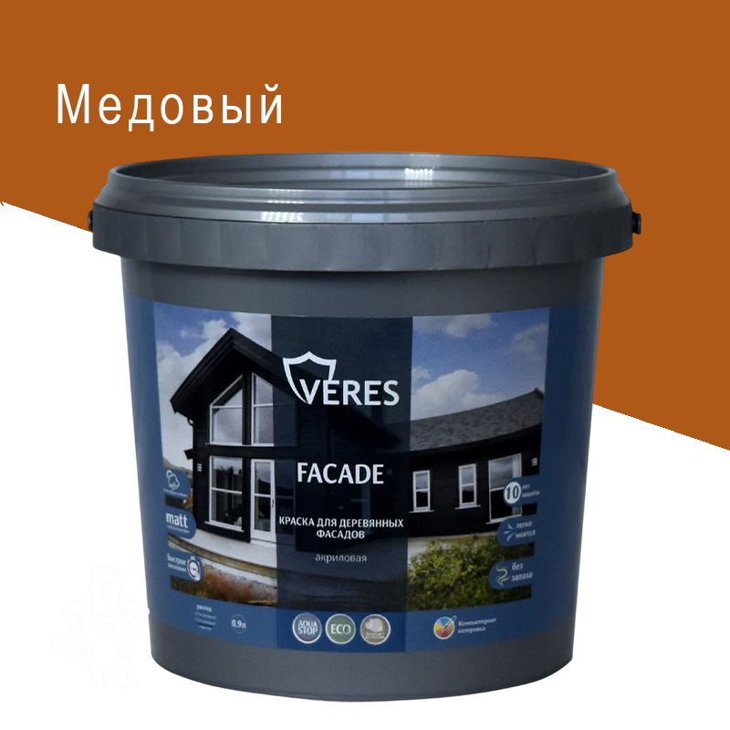 Главная МАГАЗИН ЛКМ Kраски Veres КРАСКА «FACADE» ДЛЯ ДЕРЕВ.ФАСАДОВ АКРИЛ МЕДОВЫЙ 9 Л