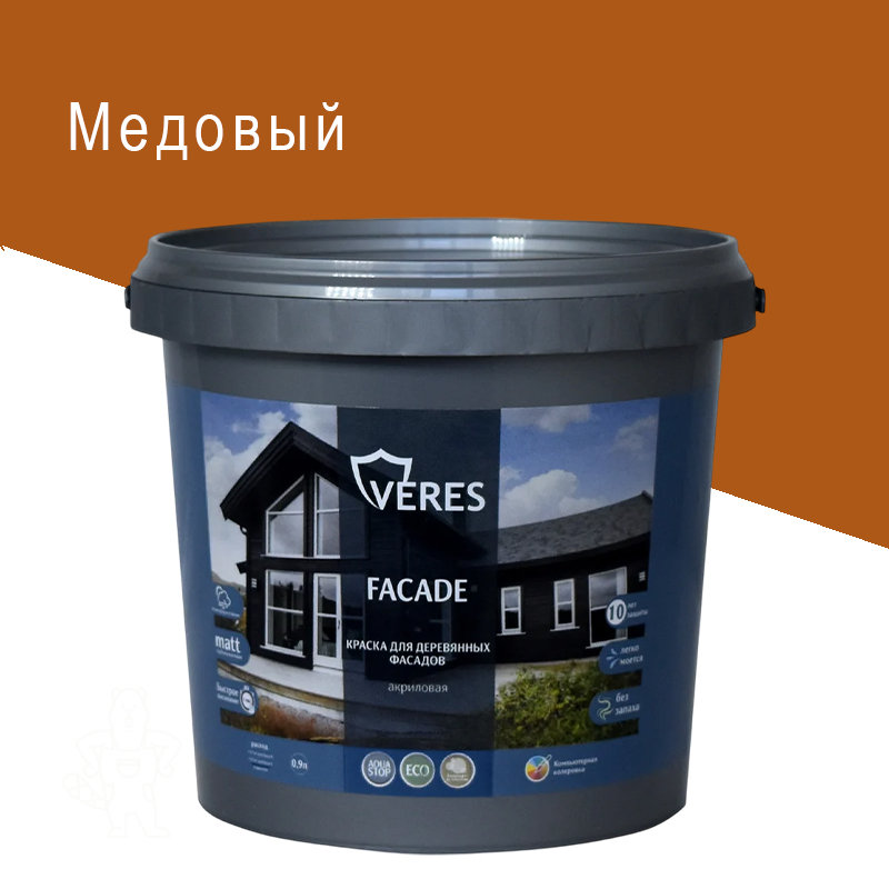 Главная МАГАЗИН ЛКМ Kраски Veres КРАСКА «FACADE» ДЛЯ ДЕРЕВ.ФАСАДОВ АКРИЛ МЕДОВЫЙ 0,9 Л