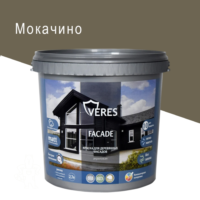Главная МАГАЗИН ЛКМ Kраски Veres КРАСКА «FACADE» ДЛЯ ДЕРЕВ.ФАСАДОВ АКРИЛ МОКАЧИНО 2,7 Л