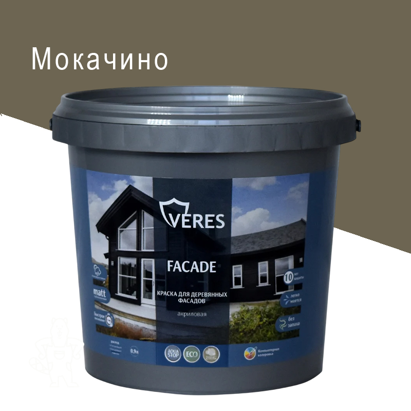 Главная МАГАЗИН ЛКМ Kраски Veres КРАСКА «FACADE» ДЛЯ ДЕРЕВ.ФАСАДОВ АКРИЛ МОКАЧИНО 9 Л