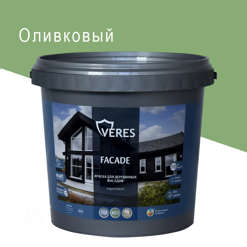 Главная МАГАЗИН ЛКМ Kраски Veres КРАСКА «FACADE» ДЛЯ ДЕРЕВ.ФАСАДОВ АКРИЛ ОЛИВКОВЫЙ 9 Л