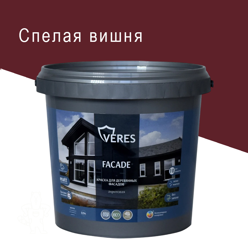 Главная МАГАЗИН ЛКМ Kраски Veres КРАСКА «FACADE» ДЛЯ ДЕРЕВ.ФАСАДОВ АКРИЛ СПЕЛАЯ ВИШНЯ 0,9 Л