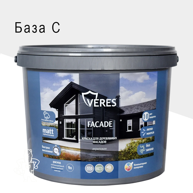 КРАСКА «FACADE» ДЛЯ ДЕРЕВ.ФАСАДОВ АКРИЛОВАЯ БАЗА С 9 Л