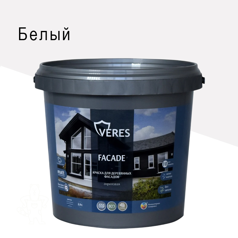 Главная МАГАЗИН ЛКМ Kраски Veres КРАСКА «FACADE» ДЛЯ ДЕРЕВ.ФАСАДОВ АКРИЛОВАЯ БАЗА А 0,9 Л