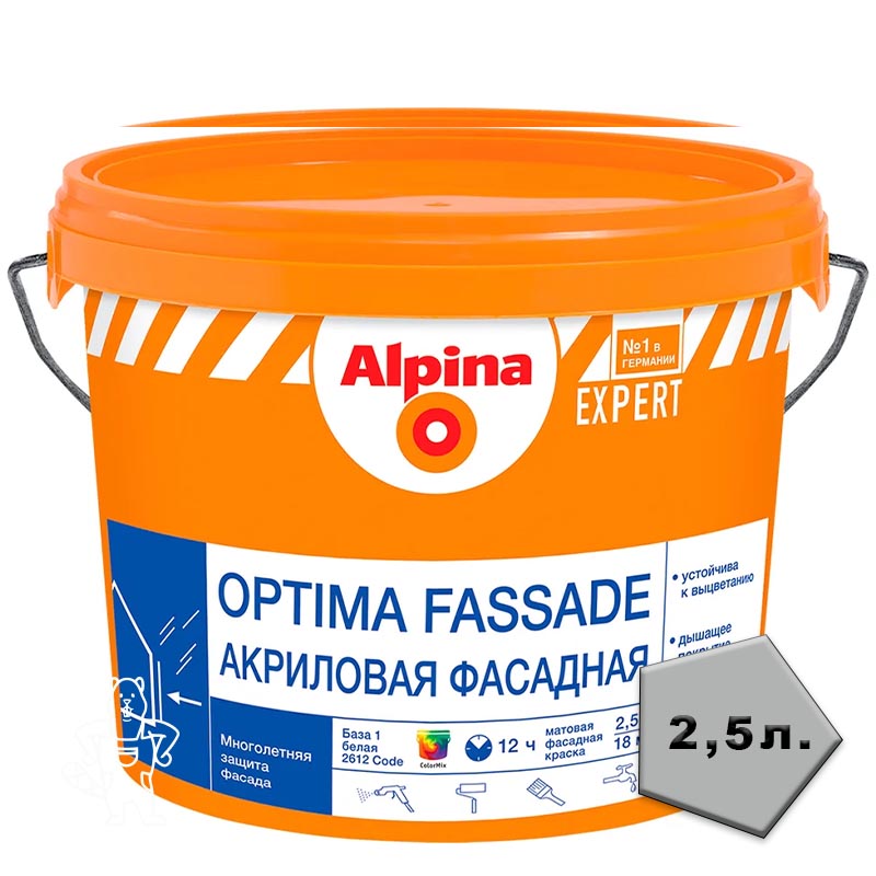 Купить Краска фасадная ALPINA «EXPERT OPTIMA FASSADE» Матовая База 1 2,5Л в Ликино-Дулево с доставкой по городу и в другие города.
