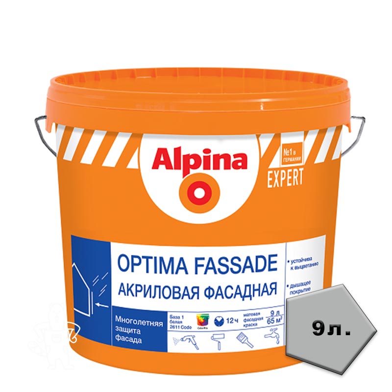 Купить Краска фасадная ALPINA «EXPERT OPTIMA FASSADE» Матовая База 1 9Л