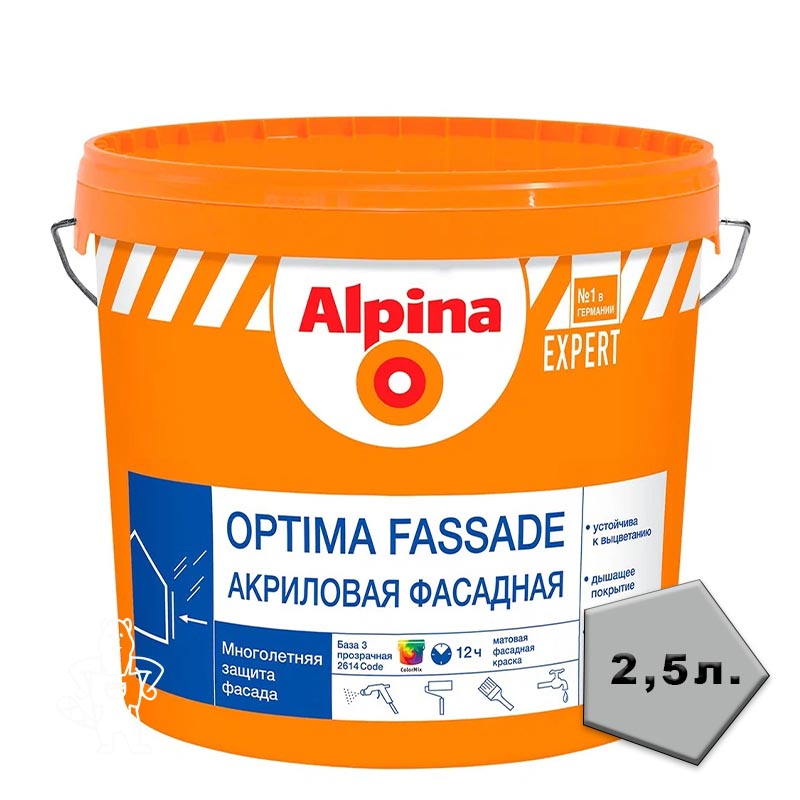 Купить Краска фасадная ALPINA «EXPERT OPTIMA FASSADE» Матовая База 3 2,35Л в Ликино-Дулево с доставкой по городу и в другие города.