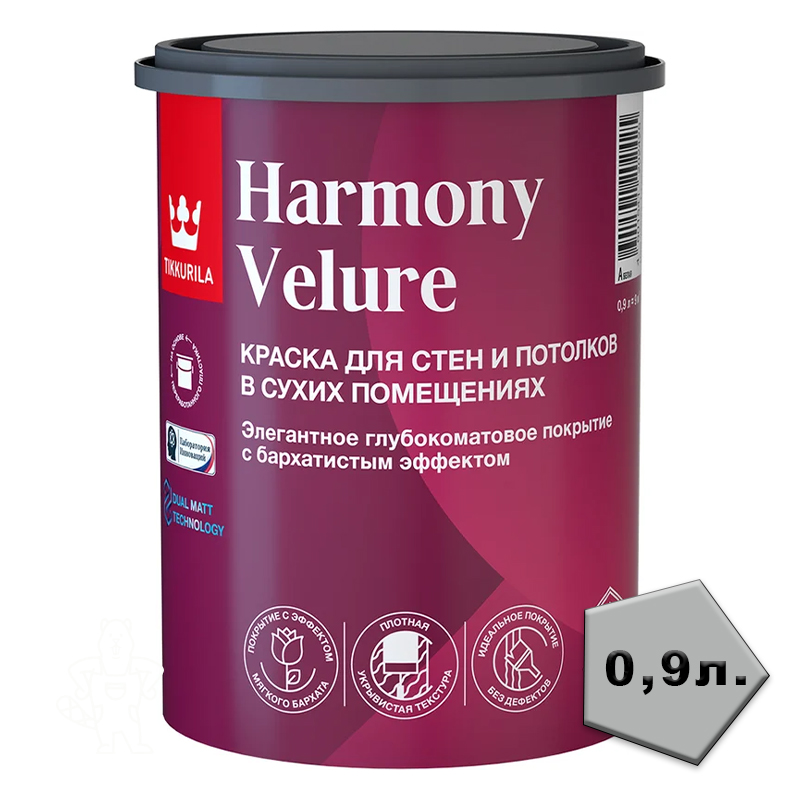 Купить Краска HARMONY VELURE д/стен и потолков матовая База А 0,9л TIKKURILA