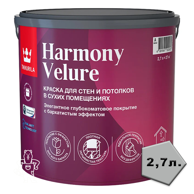 Краска HARMONY VELURE д/стен и потолков матовая База А 2,7л TIKKURILA